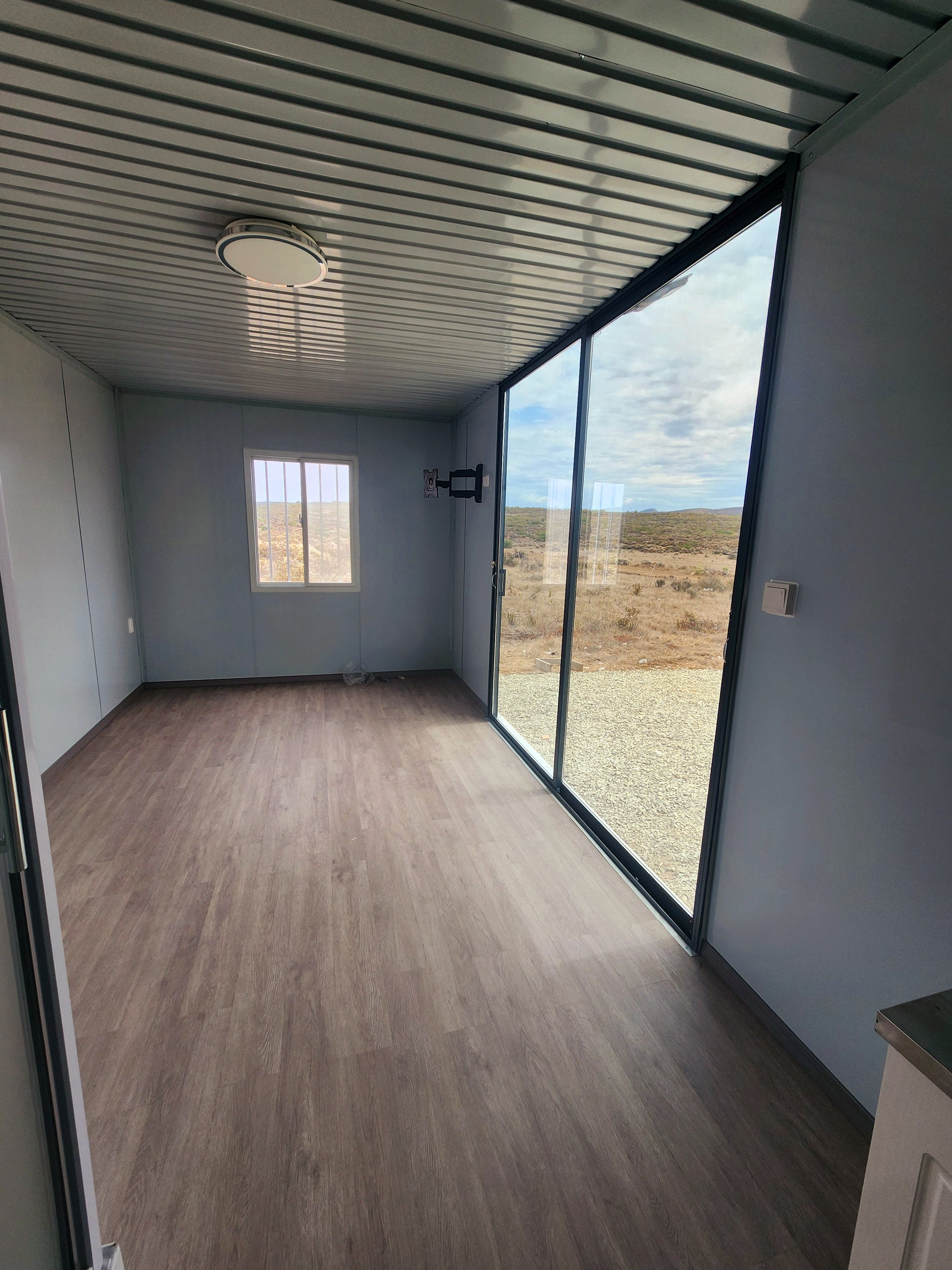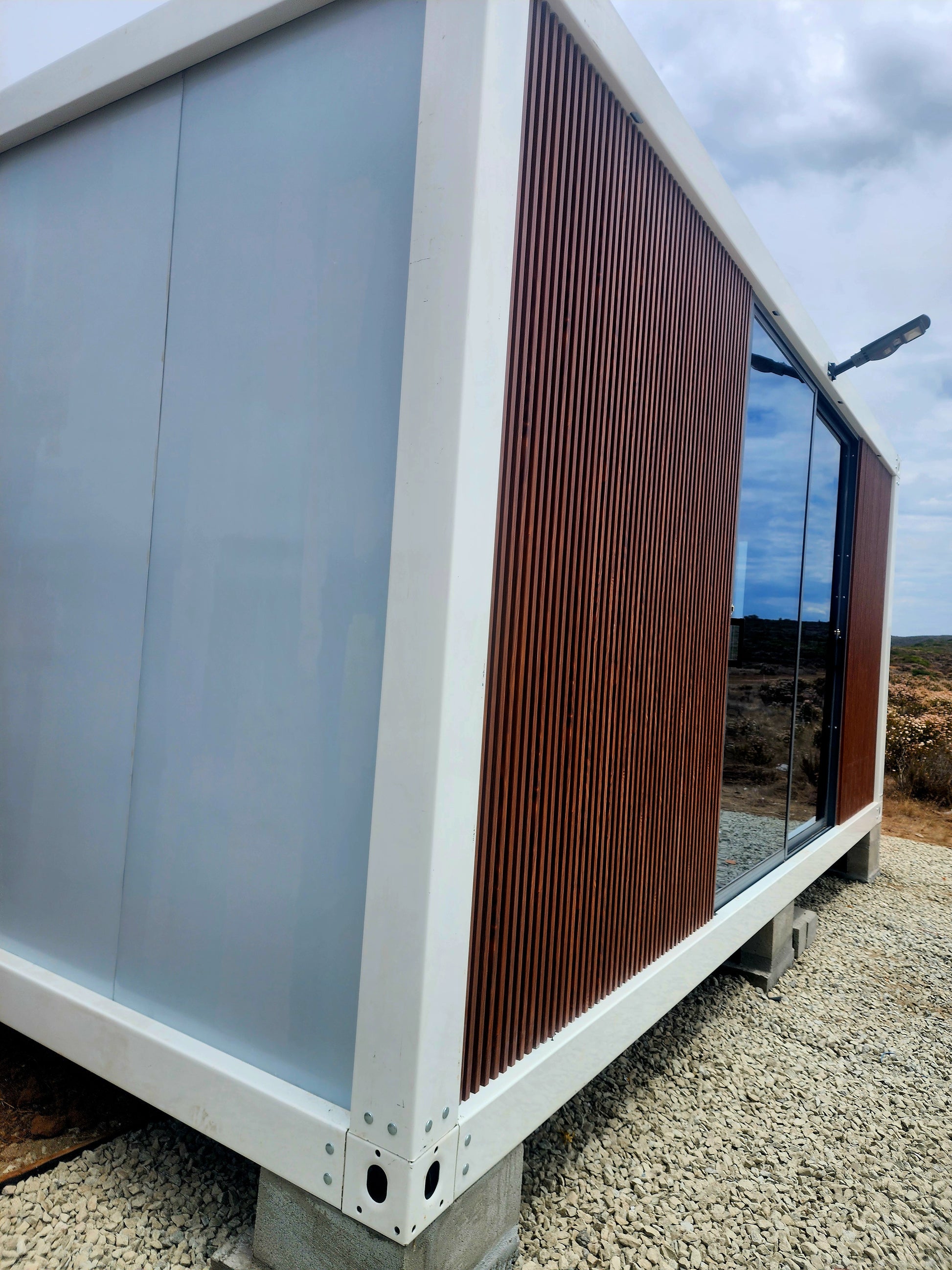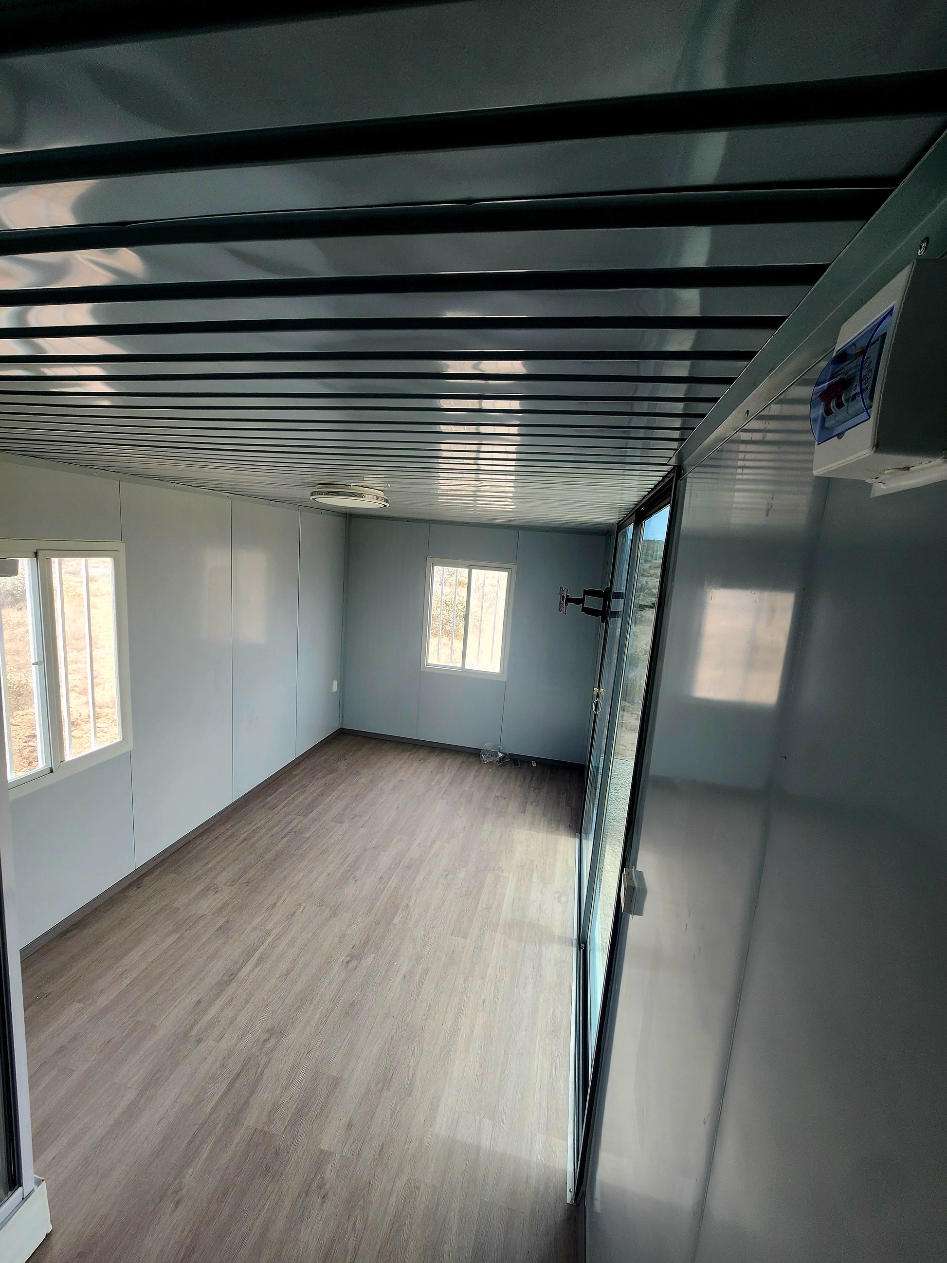 Luxury 9.5ft x 20ft x8 ft ,2 slidding doors 1/4 templed double glass. Wood exterior decoration, 2 PVC windows, pvc gray color flooring with base boards , all electricity is adapted inside walls. Strong Metal frame with polyurethane 2.2" galvanized walls. Double metal roof, ceiling light ,4 connectors 120v. 1 central panel 120V/32Ah. Exterior solar lamp. Warranty Material 5yrs life span 20/30yrs.