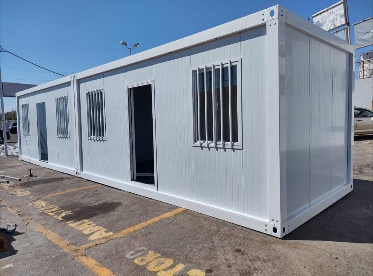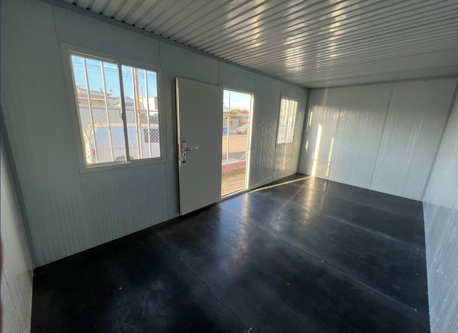 Luxury 9.5ft x 20ft x8 ft ,1 regular single metal door, 2 PVC windows, all electricity is adapted inside walls. Strong Metal frame with polyurethane 2.2" galvanized walls. Double metal roof, ceiling light ,3 connectors 120v. 1 central panel 120V/32Ah. Exterior solar lamp. Warranty Material 5yrs life span 20/30yrs.
